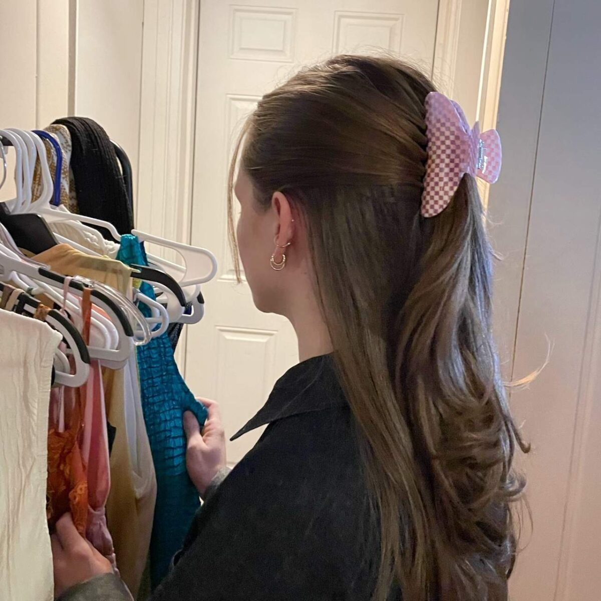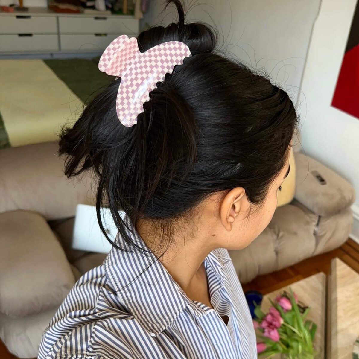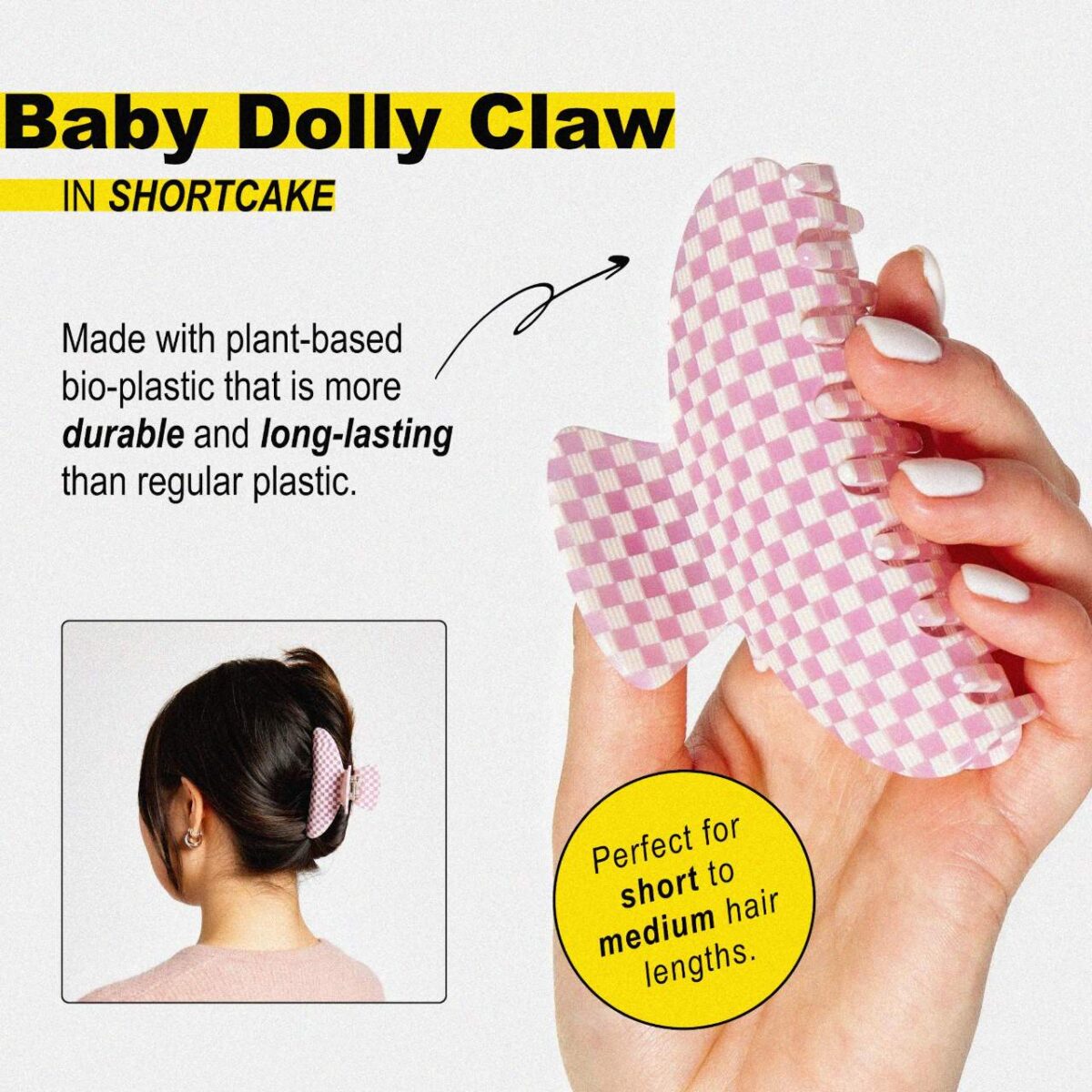 A small hair claw provides a secure hold for fine and most other hair textures.