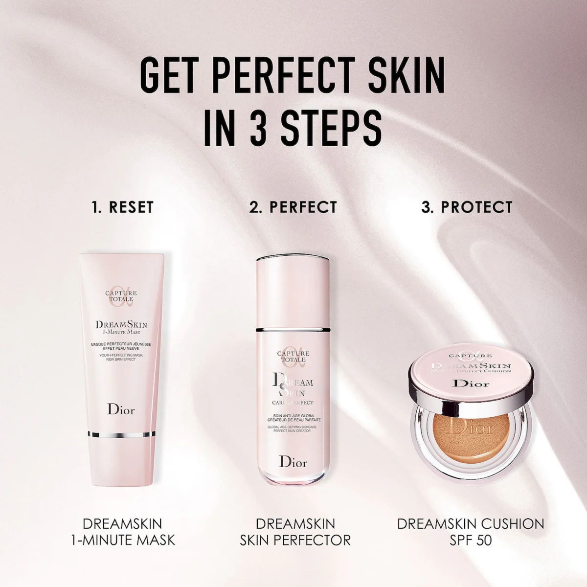 What Else You Need to Know: The formula visibly corrects an uneven complexion, dark spots, pores, redness, dryness, dullness, and wrinkles. Beneath foundation, skin appears more luminous, smoothed, and more beautiful every day. Dreamskin comes in refillable packaging for sustainable use, and individual refills are available separately.