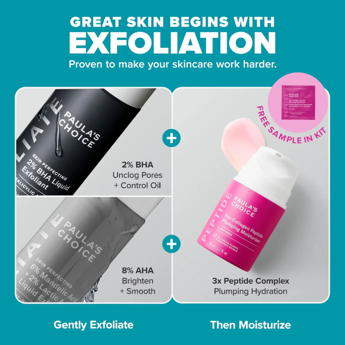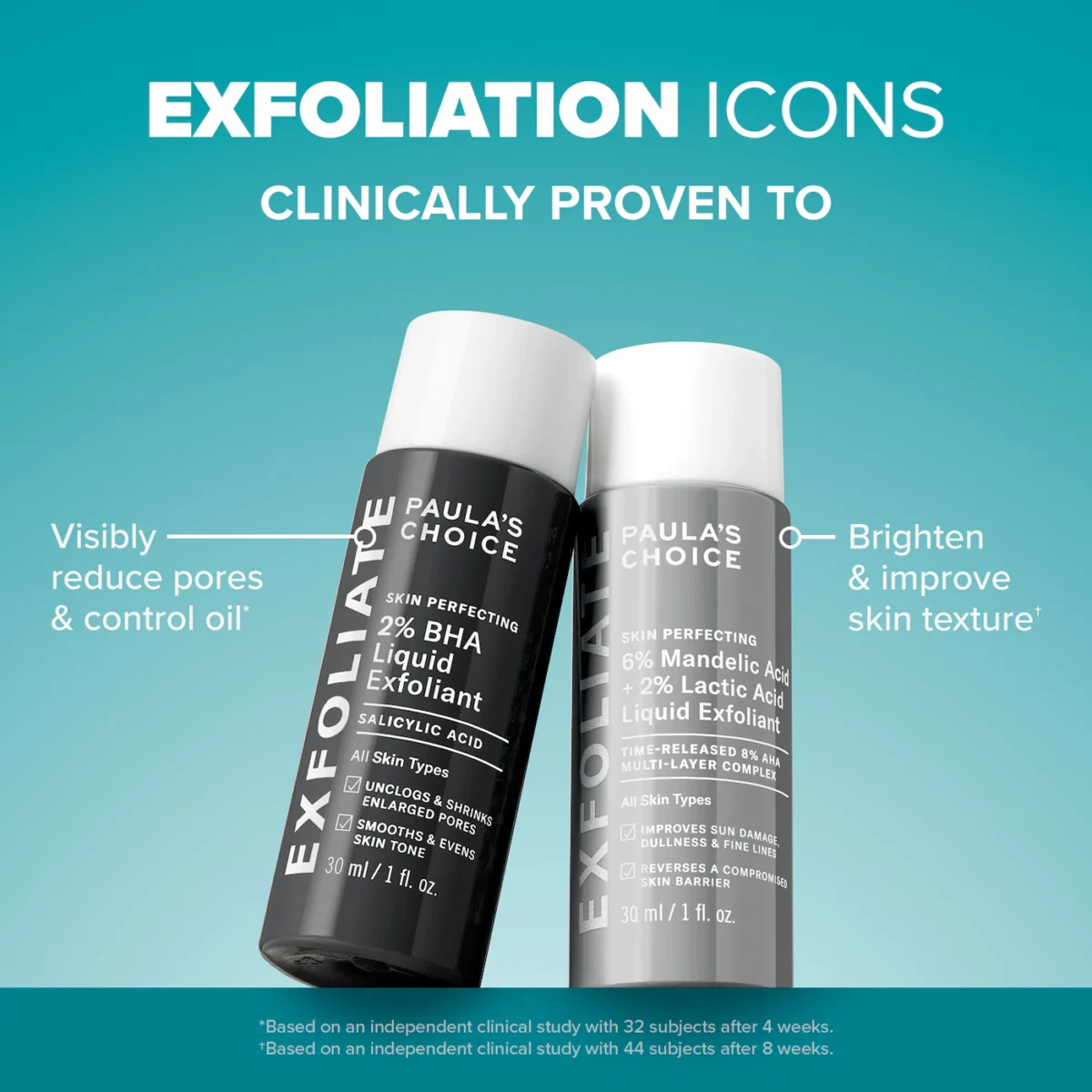 A powerful yet gentle duo features best-selling 2% BHA & resurfacing AHA exfoliating toners to unclog pores, smooth texture & reveal brighter skin.